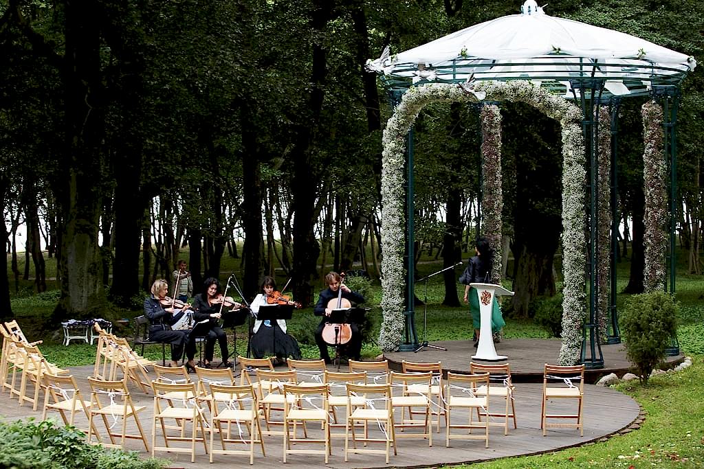 Свадьба в Schloss-hotel признак Pin-Up и хорошего вкуса. Роскошь и стиль интерьеров отеля, тенистый парк и морской берег станут эксклюзивным пространством для вашей свадьбы.